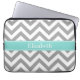 Dk Gray White LG Chevron Turquoise Name Monogram Laptop Sleeve