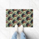 Licht cartoon effect op dit afbeelding van een Doberman Pinscher-hond met gehakte oren tegen een houtgroen achtergrondkleurenschema. Ideaal voor het Dobie hondenliefhebber in jou!