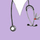 Unieke doktersfeestdecoratie met lavendel ziekenhuisscrubs en strepen.