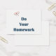 Maak je huiswerk. Herinneringen om je te helpen die dagelijkse klusjes te onthouden. Vergeet niet... vergeet niet... een magneet op de koelkast of bij de voordeur te plakken als nuttige herinneringen. Herinneringsmagneten, Tshirts, mokken en andere lekkers ook!