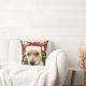 Een digitaal kunstschilderij van een jonge pup klaar voor Kerstmis met een kruid, Santa hat en een versierde boom.