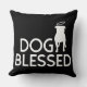"Dog Blessed" Pit Bull Angel Sierkussen, wit kunstwerk getoond op een zwarte achtergrond. DoggyStyle Design Studio, die de beste vriend van de mens viert! © 2015 DoggyStyle Design Studio
