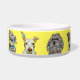 Dog bowl met veel schattige honden! Bowl werd gemaakt van Chris Ambrose's unieke, griezelige hondenschilderijen. Bowl kan worden GEPERSONALISEERD om achtergrondkleur te veranderen of tekst toe te voegen.