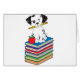 Een dalmatische puppy met een potlood in zijn mond zit op een stapel boeken. Pas dit product aan met een naam of bericht om het echt uniek te maken