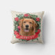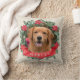Dog Photo and Name Poinsettia Wreath Holiday Plaid Kussen