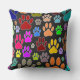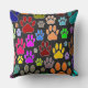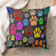 Afbeeldingen hondenpootafdrukken overal. Kleurrijke cartoon stijl ontwerp. Aangepaste decoratieve kussens voor huizen en bedrijven zoals dierenwinkels. Cadeau idee voor hondenliefhebbers van alle leeftijden.