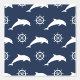 Nautisch patroon met silhouetten van dolfijnen en stuurwielen | © en ® Bigstock® - Alle rechten voorbehouden.