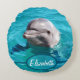 Grijze dolfijnenfoto glimlacht uit prachtig helder oceaanwater. U kunt het personaliseren door om het even welke tekst toe te voegen u wilt, uw namen, of uw initialen. Verander gewoon de tekst die aan je eigen keuze is toegevoegd.