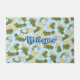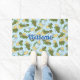 Gevulde druivenbladeren met rijst en kruiden. Lemonplakken, dille, nertsbladeren en tzatzikidakis dip. Aangepaste achtergrondkleur. Naadloos patroon. Aangepaste tekst.