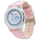 Leuke Dolfijn Familie uit voor een duik. Zacht blauw op blauwe tinten achtergrond en golvende rand blauwe rand. Grotere blauwe stippen shows posities van 12, 3, 6 en 9.