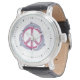 Bottlenose dolfijn die door een roze vredesbord springt.
