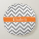 Donk Gray White LG Chevron Pumpkin Naam Monogram Rond Kussen