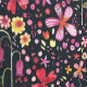 Modern bloemmotief in de waterverf van bloemige bloemen in kleurrijk rood, geel en roze op een donkere achtergrond. Originele kunst van Nic Squirrell.