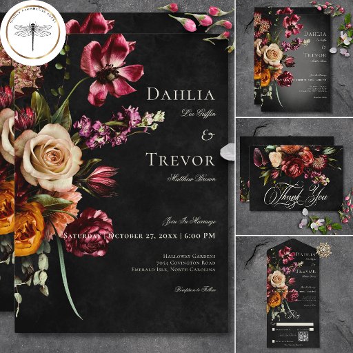 Dark Elegant Autumn Floral WeddingOntworpen door Kathe Santillo