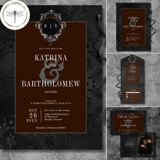 Stap in een wereld van donkere elegantie met onze boeiende gotische bruiloft, bewaar de datumkaart. Tegenover een prachtig zwart-op-zwart damask satijn bloemenbehang straalt deze uitnodiging een sfeer van mysterie en tijdloze charme uit. De achtergrond van het tekstvak in rijk nummerbruin voegt een vleugje kleur toe. Met lettertypen en een oude look die sophisticatie uitstraalt, is deze uitnodiging een perfecte mix van ouderwetse allure en hedendaagse aantrekkingskracht. Omarm de allure van het verleden en nodig je gasten uit om getuige te zijn van een liefde die de tijd overstijgt met deze boeiende gotische huwelijksuitnodiging. Creëer door Simply Farmhouse Press.