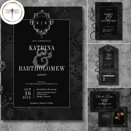 Stap in een wereld van donkere elegantie met onze boeiende gotische huwelijksuitnodiging. Tegenover een prachtig zwart-op-zwart damask satijn bloemenbehang straalt deze uitnodiging een sfeer van mysterie en tijdloze charme uit. Met een oude look die sophisticatie uitstraalt, is deze uitnodiging een perfecte mix van ouderwetse allure en hedendaagse aantrekkingskracht. Omarm de allure van het verleden en nodig je gasten uit om getuige te zijn van een liefde die de tijd overstijgt met deze boeiende gotische huwelijksuitnodiging. Creëer door Simply Farmhouse Press.