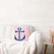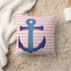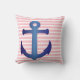 Donker nautisch blauw anker roze gestreepte strepe kussen
