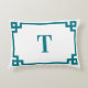 Donker Turquoise Griekse Key Border Monogram Accent Kussen
