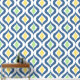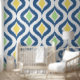 Donkerblauw Geel Licht Groen Wit Ikat Patroon Behang