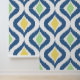 Dit ontwerp heeft een opvallende mix van donkerblauwe, witte, gele en lichtgroene tinten in een Ogee wave ikat-stijl. De Ogee-contour is bochtig en lijkt op een verlengde 'S', die een levendig en ritmisch beeld geeft. Het patroon straalt verfijning en elegantie uit, met een infusie van eigenzinnige en avant-garde elementen. Het is geschikt voor zowel hedendaagse chique als tijdloze esthetiek, waardoor het veelzijdig is voor verschillende smaken en persoonlijkheden. Aangeboden over een spectrum van moderne huisdecorpunten, is het perfect voor zij die onderscheidend karakter in ruimten zoals de slaapkamers van de meester, keuken, woon of familiekamer, universiteitsstudentenhuis, flat, studio, of appartement willen doordringen.