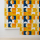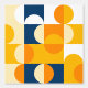 Dit ontwerp toont een modern geometrisch patroon met cirkels en halve cirkels in tinten donkerblauw, geel, ivoor en sinaasappel tegen een witte achtergrond. Het is een elegant en stijlvol ontwerp dat eclectisch minimalisme belichaamt, ideaal voor artistieke interieurontwerpers, decorliefhebbers, trendsetters en fans van retro of abstracte digitale geometrische motieven. Dit maar funky hipsterpatroon is veelzijdig, beschikbaar op een verscheidenheid van eigentijdse decorpunten, makend het geschikt voor het verbeteren van de ambiance van ruimten zoals meester of kinderslaapkamers, keukens, kinderdagverblijven, woonkamers, vrouwengrotten, universiteitsslaapzalen, flats, studio's, of appartementen.
