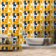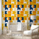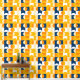 Donkerblauw Geel Sinaasappel Wit Cirkels Kunstpatr Behang