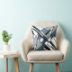 Donkerblauw grijs wit diagonaal hoekig ontwerp kussen
