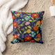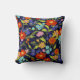Staak je decor op met deze roemrijke en kleurrijke bloemkussen met een losse patroon van wilde bloemen in retroflectoren zoals tomatenrood, sherbet sinaasappel, kalkgroen, helder aqua en serene blauw violet allemaal op een diepe blauwe achtergrond.