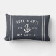 Voeg een coole aangepaste touch toe aan uw vissersboot, zeilboot, jacht of woonboot met dit gepersonaliseerde kussen. Rustiek nautisch ontwerp is voorzien van uw bootnaam, scheepsregister en jaar in witte letters, met een ankerillustratie en touwstreep met details op een diepe marineblauwe achtergrond.