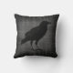 Dit is een kussen met een donkere fluwelen uitstraling met daarop een zwarte raaf.