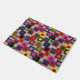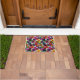 Dit portaal heeft een geometrische vormgeving van vierkantjes binnen vierkantjes in bruin, zwart, baksteen, geel, blauwgroen, groen, paars, goud, roze, rood, grijs op een veld met lichtere grijs.