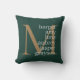 Perfect vakantiegeschenk voor het gezin (bijv. grootouders, schoonfamilie). Donkergroene kussen met uw tekst in off-white chic lettertype. Voeg eenvoudig uw namen en gouden monogram toe. Exclusief ontworpen voor u door Happy Dolphin Studio.