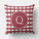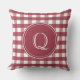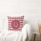 Klassiek karmozijnrood en wit gingham stijlpatroon is de achtergrond voor een groot monogram initiaal. Beide zijden zijn identiek, dus je hoeft het initiaal maar één keer toe te voegen. Stijlvol ontwerp is geweldig voor een veranda of woonkamer in het bijzonder.