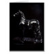 Een mooie Friessische hengst die in het maanlicht staat en naar de nacht luistert.