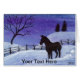 Een klein waterverf landschap van een ezel in een sneeuwveld, gedempt tegen en een sterrenhemel in de nacht.
