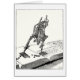 Een skelet gebruikt stelten om over een middeleeuws manuscript te lopen. Kunstwerk van Joseph Sattler.