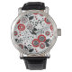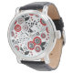 Doodle bloemen en bladeren in rood en zwart horloge