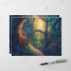 8 1/2 x 11 plakboekpapier is voorzien van een AI-vormig digitaal kunstmatig afbeelding van een magische tuinpoort met zonnestralen op de achtergrond.