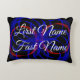 This geometric accent pillow is a parody on our names and showcases an alternative possibility of what our name could look like with a few minor changes. This product features front side, first and last name text customization. On the back side of the pillow, switch the first letter or couple of letters of your front and last names to create the interesting alternative. Enjoy this blueberry color red double accented geometric theme design. Combine with the in series throw and round pillows to complete the set.