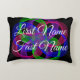 This geometric accent pillow is a parody on our names and showcases an alternative possibility of what our name could look like with a few minor changes. This product features front side, first and last name text customization. On the back side of the pillow, switch the first letter or couple of letters of your front and last names to create the interesting alternative. Have fun with this colorful double loop mesh geometric theme design. Combine with the in series throw and round pillows to complete the set.