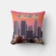 Kleurrijke vectorillustratie met een prachtige skyline, gedomineerd door wolkenkrabbers en palmbomen uit het centrum van Los Angeles met een mooie Californische zonsondergang op de achtergrond.