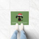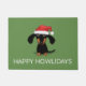 Cute Cartoon Wiener Dog Kerstmis Welkom Mat. Zwarte en beige Dachshund-puppy met een kersthoed. De tekst "Happy Howlidays" kan met uw eigen bericht worden gepersonaliseerd. Een grappig Doxie-hormoon voor het vakantieseizoen. Maakt een perfect cadeau voor weenie hondenliefhebbers.
