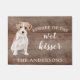 Grappig pas op voor de natte kusser" Draadharige Jack Russell Hondendeurmat gezet op een rustieke faux achtergrond. Bezoek onze winkel om een groot assortiment hondenbroden te uitzichten