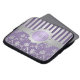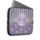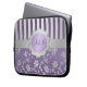 Deze gepersonaliseerde paarse en zilveren klep- en strepenlaptophoes bevat tekstvakken die u kunt aanpassen aan uw eigen naam, initialen, bedrijfsnaam of andere tekst. Als u hulp nodig hebt bij het aanpassen, kunt u een e-mail sturen naar niteowlstudio@gmail.com.