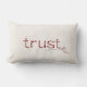 TRUST in de rode inspirerend tekst met de naald en de draad op de lichtroomkleurige getextureerde achtergrond