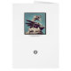 Een groetings kaart met een aantrekkelijk midden uitgelijnd vierkant Instagram-stijlfoto van een stenen drakensculptuur in City Hall, Cardiff, Wales. Een kleinere herhaling van het afbeelding op de achterkant, samen met titel en fotograaf/kunstenaar, enz. Deze kaart kan ook worden aangepast.