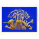 Getoond is een Vietnamese draak in een bamboe in goud tegen een blauwe achtergrond.