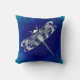 Drijf de kussen met afbeelding draak tegen een blauwe achtergrond en de blauwe en paarse draak vliegen op de rug.