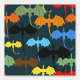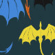 Een opvallende drakenvleugelgroep in tribale stijl stijgt omhoog over een diepe, donkerblauwe achtergrond. Elke draak is uniek geïllustreerd in levendig zwart, bruin, rood, sinaasappel, geel, blauw en groen. Hun gedurfde, open vleugels en elegante tribale tattoo-styling maken dit ontwerp tot een dynamisch en mystiek statement-stuk - ideaal voor zowel fantasyliefhebbers als drakenfans.