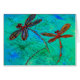 Prachtige rode en blauwe libellen op een gevlekte blauwe en groene achtergrond van turkooizen. Van mijn oorspronkelijke libellen kunstwerk. LyndseyArt